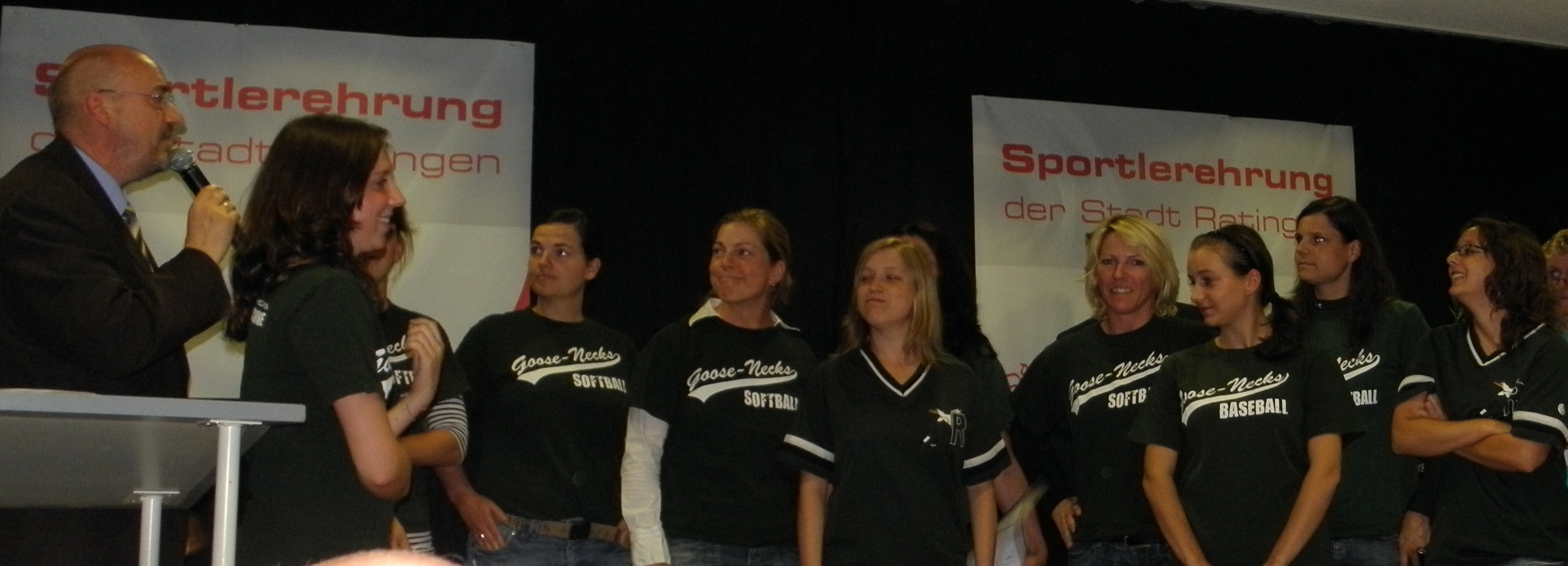 Bei der diesjährigen Sportlerehrung der Stadt Ratingen wurde das Damenteam der Ratingen Goose-Necks für Ihren Aufstieg in die höchste deutsche Spielklasse im Softball geehrt. . . .