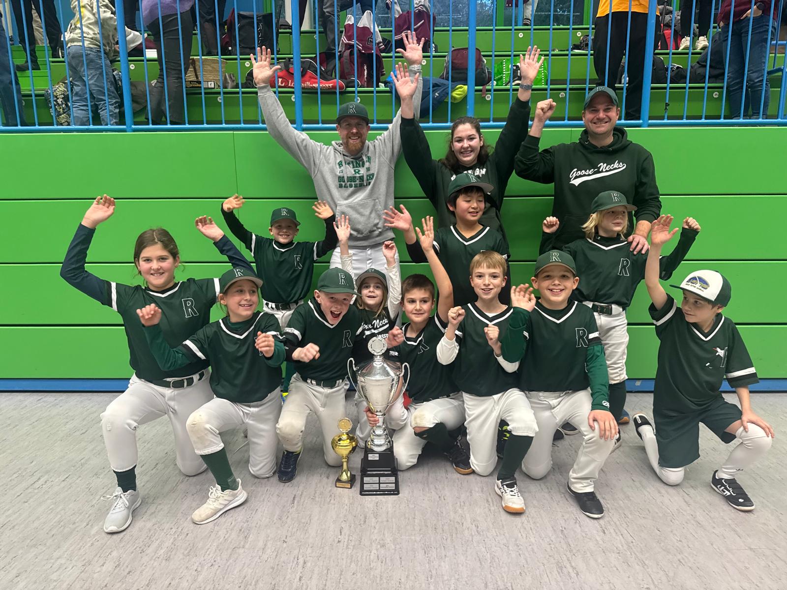 Am 1. Dezember 2024 bebte die Sporthalle in Wuppertal, als das traditionelle Nikolausturnier der Stingrays seine Türen für die U10- und U12-Baseballtalente öffnete. Mit schnellem Hallenbaseball, bei dem jedes Spiel auf 12 Minuten begrenzt ist und nur sechs Spieler gleichzeitig auf dem Feld stehen, boten die jungen Athleten packenden Sport. In dieser rasanten und anspruchsvollen Atmosphäre zeigte die U10 Goose-Necks aus Ratingen ihre Klasse und sicherte sich nach acht Spielen verdient den Gesamtsieg. Sieben Siege und nur eine knappe Niederlage sprachen eine deutliche Sprache – ebenso wie der riesige Pokal, der am Ende unter großem Jubel in die Höhe gestemmt wurde. Und alles ohne auch nur eine Minute in der Halle trainiert zu haben. . . .
