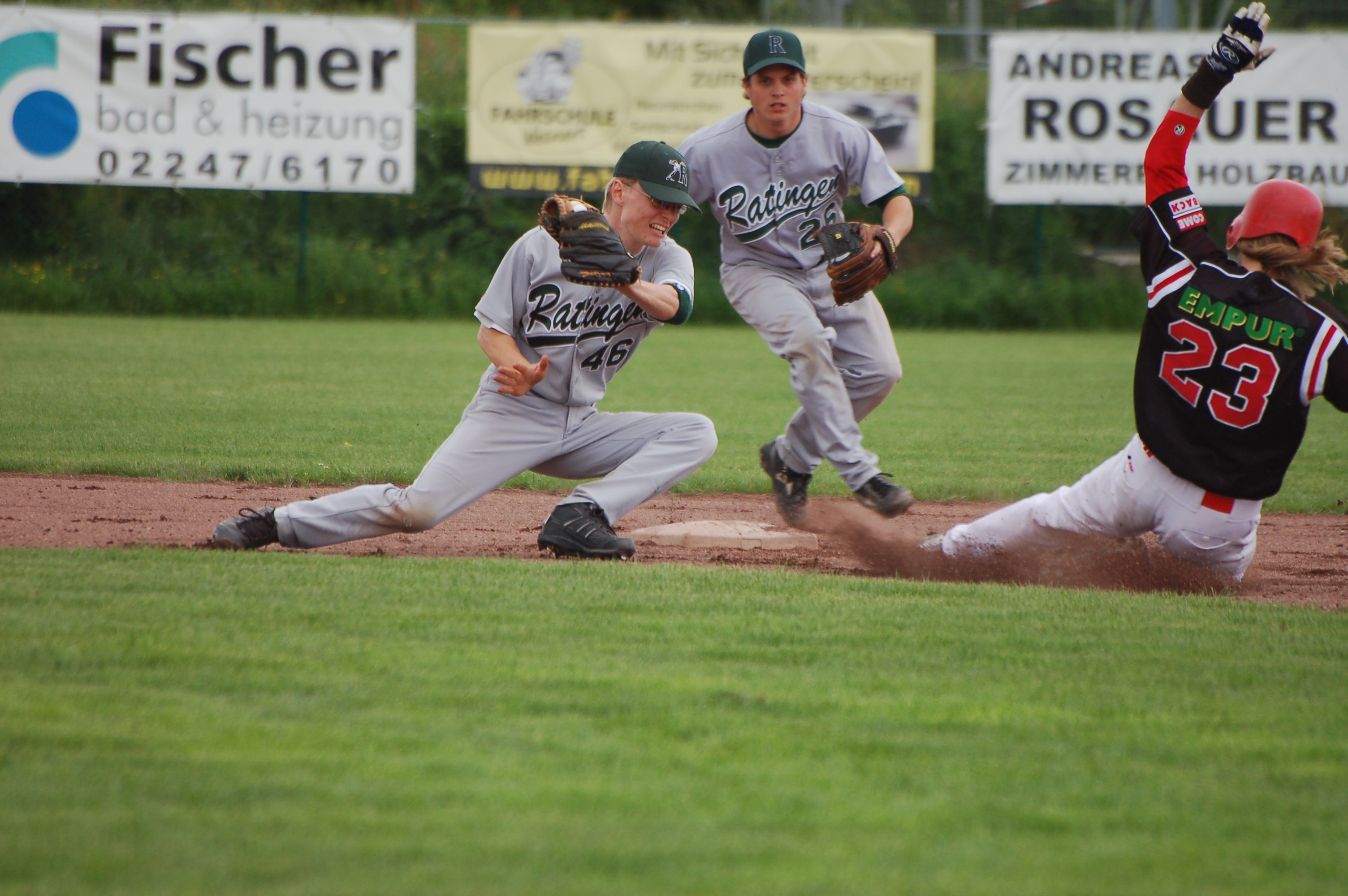 Jonas Kuklan beim Tag an der 2nd Base (Foto: Neunkirchen Nightmares)