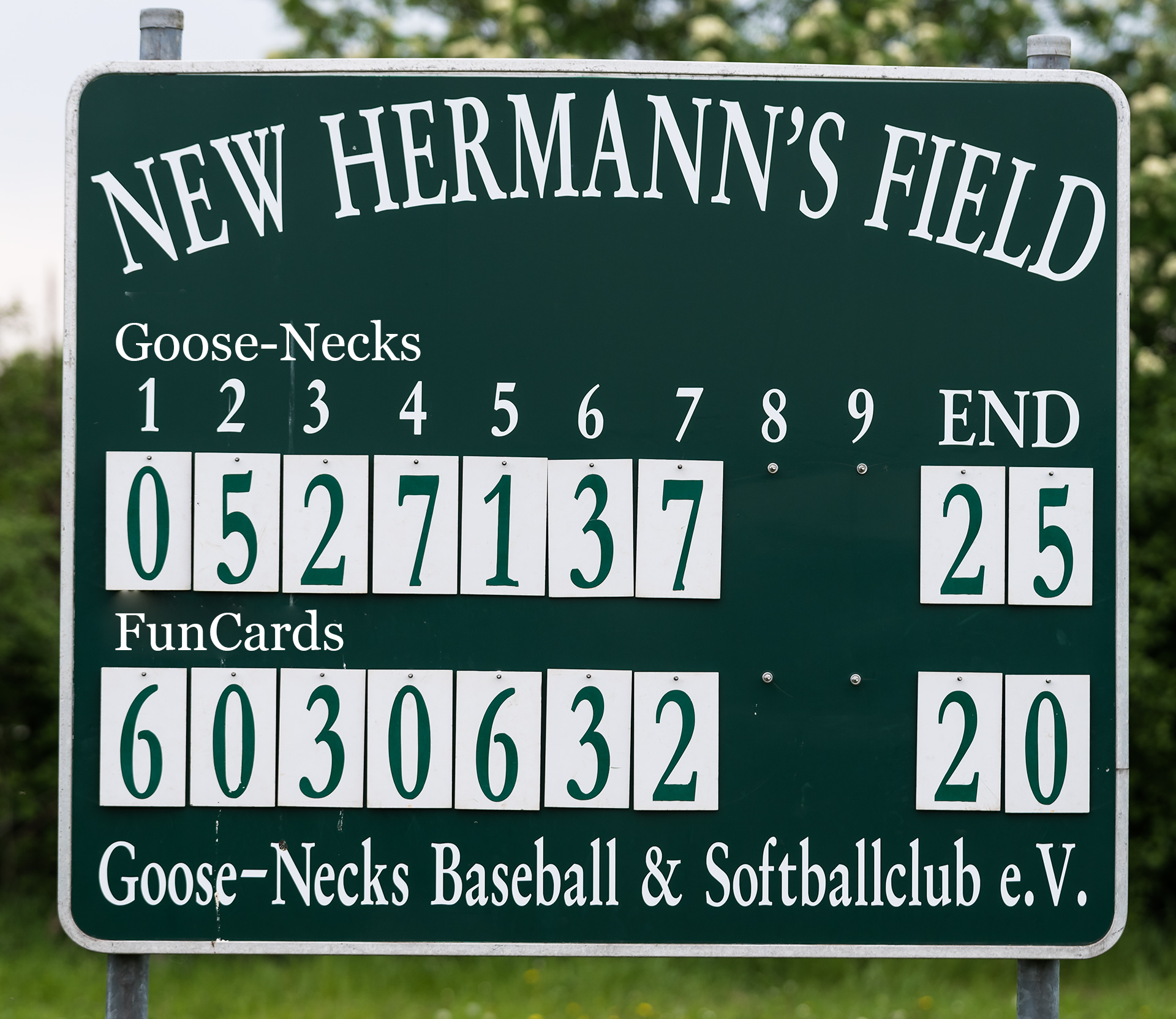 Am Sonntag starteten die jungen Goose-Necks den dritten Versuch in ebenso vielen Spieltagen, etwas Baseball ohne Dauer- und Platzregen spielen zu können. Diesmal sollte es tatsächlich funktionieren, dazu noch gab es zwei ungefährdete Siege, zu denen drei starke Pitcher ebenso beitrugen wie die Offense, die mit zwei Base Hits pro Inning ganz überwiegend schlagfreudig war. . . .