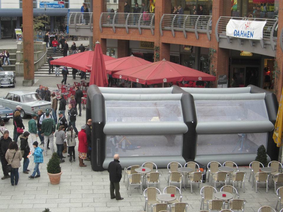 Die Goose-Necks freuen sich sehr über die Möglichkeit, dieses Wochenende auf dem traditionellen Lintorfer Handwerkermarkt sich neben zahlreichen Einzelhändlern auch selbst präsentieren zu dürfen. Die Base- und Softballer werden mit einem Mitmach-Aktionsstand vor Ort sein. Jeder, ob jung oder jung geblieben, ist herzlich eingeladen die Faszination Baseball/Softball selbst auszuprobieren. Weil ein ausklappbares Baseballfeld schwierig zu beschaffen war, haben die Gänse einen sogenannten Schlagkäfig, im Fachjargon "Cage" genannt, dabei. Alle Besucher können darin einen Base- oder Softball-Schläger schwingen und probieren den Ball kräftig zu treffen.